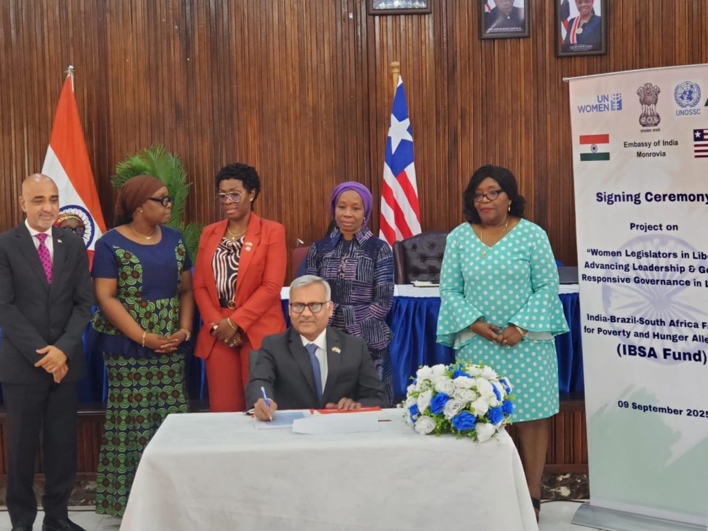 लाइबेरिया स्थित भारतीय दूतावास ने सोशल मीडिया मंच ‘एक्स’ पर लिखा लाइबेरिया में महिला नेतृत्व के लिए एक महत्वपूर्ण क्षण। विदेश मंत्रालय में ‘लाइबेरिया में महिला विधायक: आवाज़, नेतृत्व और लिंग-संवेदनशील शासन को बढ़ावा देना’ विषय पर आईबीएसए निधि परियोजना पर आधिकारिक रूप से हस्ताक्षर किए गए। भारत, ब्राजील और दक्षिण अफ्रीका के संयुक्त राष्ट्र दक्षिण-दक्षिण सहयोग के अंतर्गत, आईबीएसए निधि से 1 मिलियन अमेरिकी डॉलर की सहायता से इस परियोजना को संयुक्त राष्ट्र महिला लाइबेरिया द्वारा लाइबेरिया की महिला विधायी कॉकस के साथ साझेदारी में कार्यान्वित किया जाएगा।
